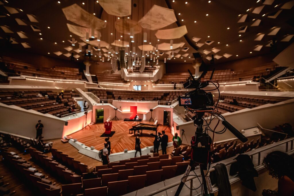 Lichtstarke Optik: Kinos, Theater oder Clubs sind oft dunkel. Wir setzen Kameras mit hoher Lichtempfindlichkeit (DSLM) ein, die auch bei atmosphärischer Beleuchtung rauscharme, brillante Bilder liefern.