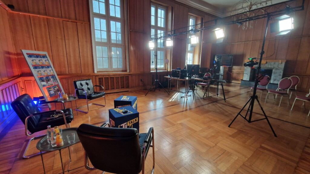 Wir denken vom Kamerabild her. Während eine Saalbeleuchtung für das Auge oft ausreicht, braucht der Kamerasensor gezielte Unterstützung. Unsere Technik ist schnell aufgebaut, unauffällig im Saal platziert und genau darauf optimiert, dass die Hauttöne im Stream natürlich und professionell wirken – ohne den Saal in eine Flutlicht-Arena zu verwandeln.